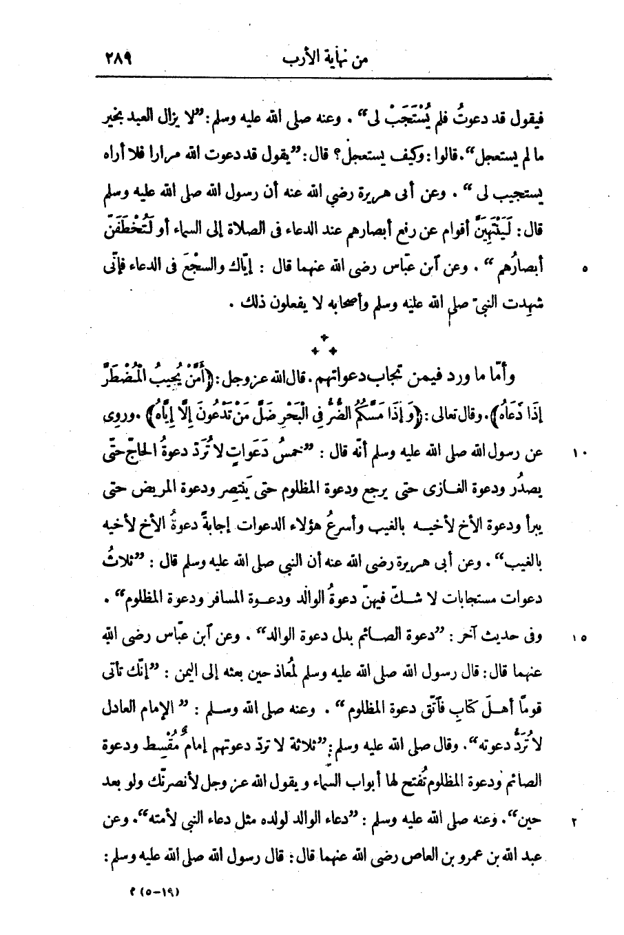 وروى عن رسول الله صلى الله عليه وسلم أنّه قال: «خمس دعوات لا تردّ دعوة الحاجّ حتّى يصدر ودعوة الغازى حتى يرجع ودعوة المظلوم حتى ينتصر ودعوة المريض حتى يبرأ ودعوة الأخ لأخيه بالغيب وأسرع هؤلاء الدعوات إجابة دعوة الأخ لأخيه بالغيب»