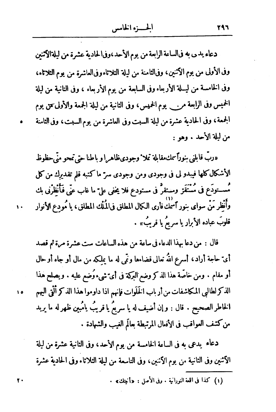 دعاء يدعى به فى الساعة الخامسة من يوم الأحد، وفى الثانية عشرة من ليلة الاثنين وفى الثانية من يوم الاثنين، وفى التاسعة من ليلة الثلاثاء وفى الحادية عشرة