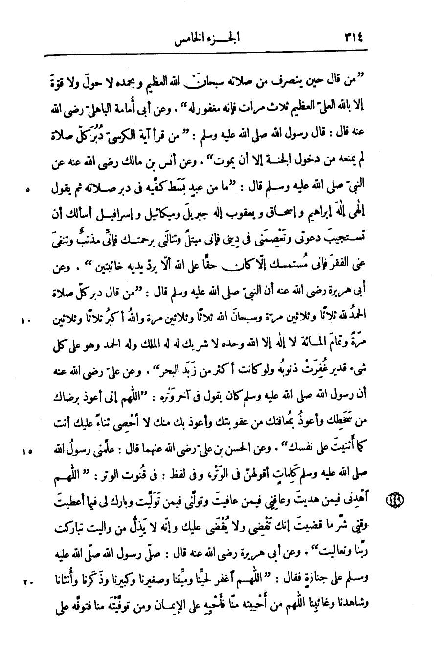 «من قال حين ينصرف من صلاته سبحان الله العظيم وبحمده لا حول ولا قوّة إلا بالله العلىّ العظيم ثلاث مرات فإنه مغفور له»