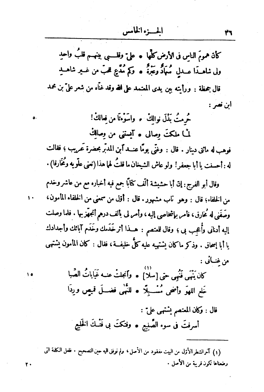 قال جحظة: ورأيته بين يدى المعتمد على الله وقد غنّاه من شعر علىّ بن محمد ابن نصر: