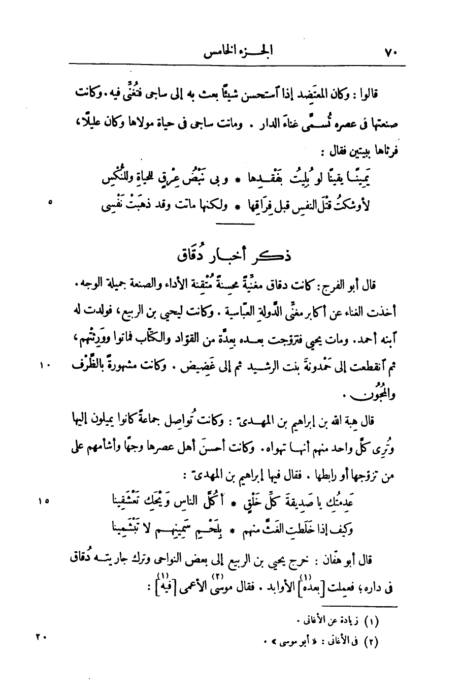 قال أبو الفرج: كانت دقاق مغنيّة محسنة متقنة الأداء والصنعة جميلة الوجه.