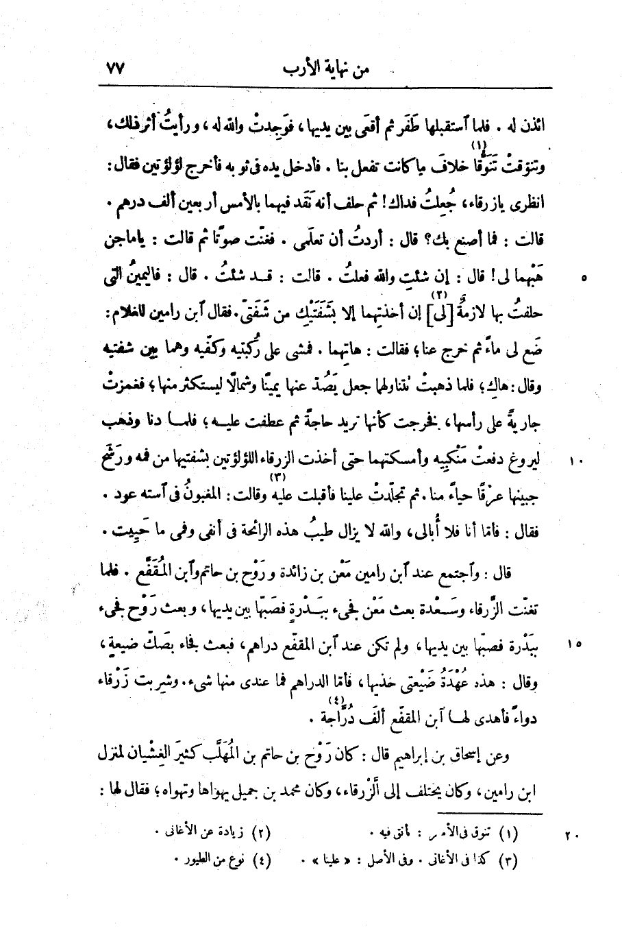 وعن إسحاق بن إبراهيم قال: كان روح بن حاتم بن المهلّب كثير الغشيان لمنزل ابن رامين، وكان يختلف إلى الزّرقاء، وكان محمد بن جميل يهواها وتهواه؛ فقال لها: