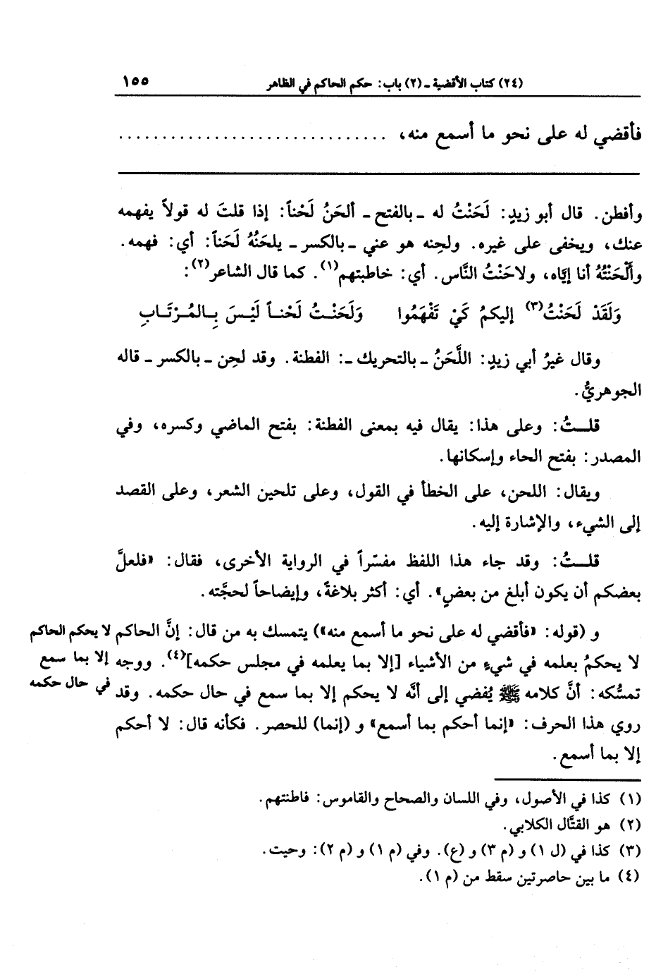 وأفطن. قال أبو زيد: لَحَنتُ له - بالفتح - أَلحَنُ لَحنًا: إذا قلت له قولًا يفهمه عنك، ويخفى على غيره. ولَحِنَهُ هو عَنِّي - بالكسر- يَلحَنهُ لَحنًا؛ أي: فَهِمَهُ. وأَلحَنتُه أنا إيَّاه، ولاحَنتُ النَّاس؛ أي: خاطبتهم (¬1). كما قال الشاعر (¬2):