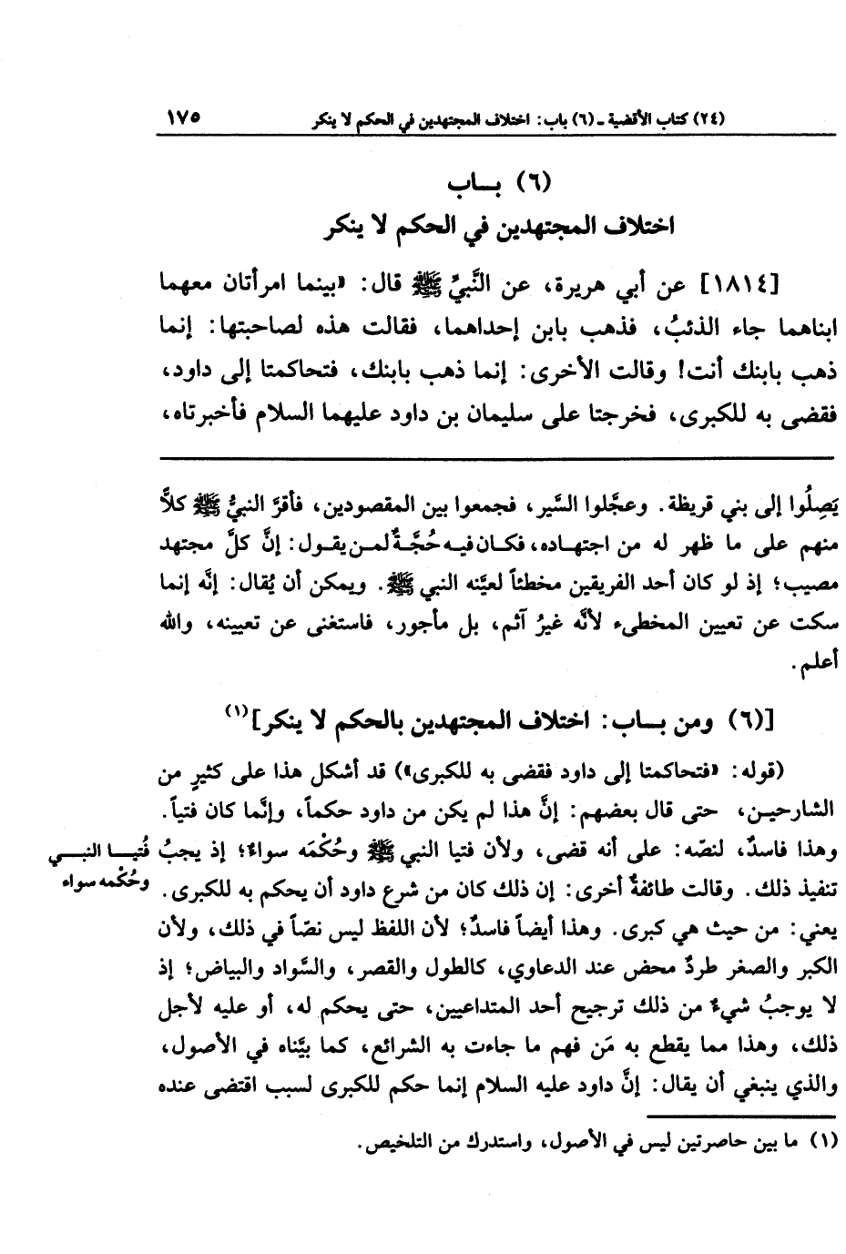 (6) باب اختلاف المجتهدين في الحكم لا ينكر