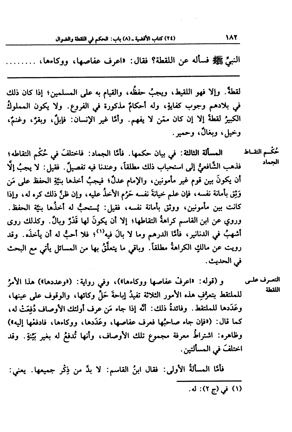 النَّبِيِّ صَلَّى اللَّهُ عَلَيهِ وَسَلَّمَ فَسَأَلَهُ عَن اللُّقَطَةِ فَقَالَ: اعرِف عِفَاصَهَا وَوِكَاءَهَا،