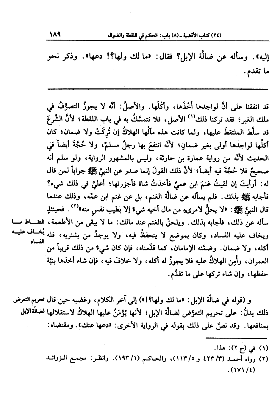 إِلَيهِ. وَسَأَلَهُ عَن ضَالَّةِ الإِبِلِ فَقَالَ: مَا لَكَ وَلَهَا، دَعهَا. وذكر نحو ما تقدم.