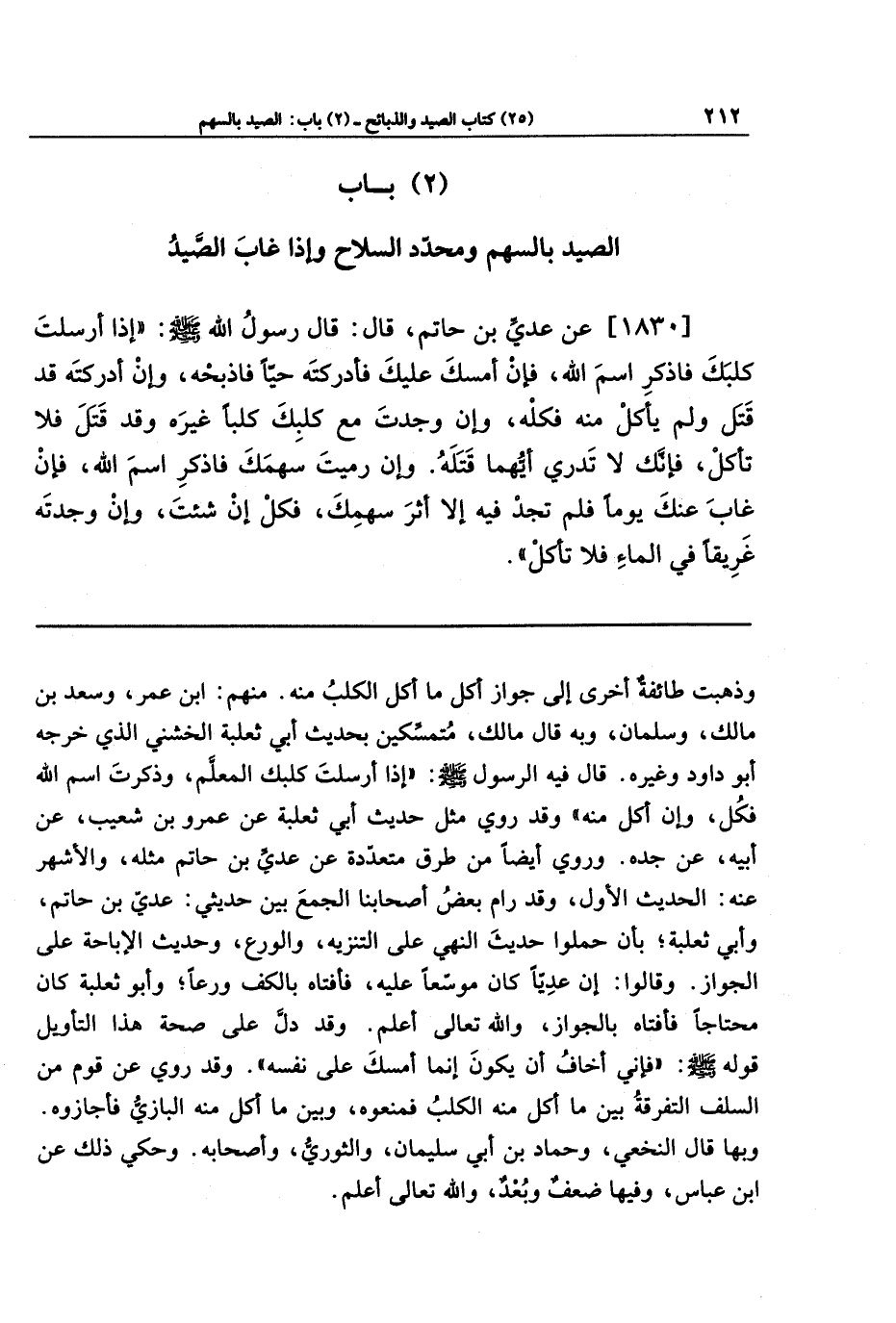 (2) باب الصيد بالسهم ومحدد السلاح وإذا غاب الصيد