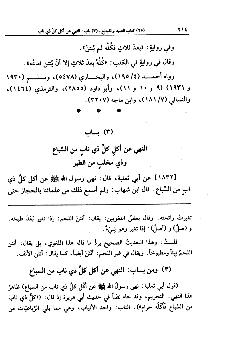 (3) ومن باب: النهي عن أكل كل ذي ناب من السباع