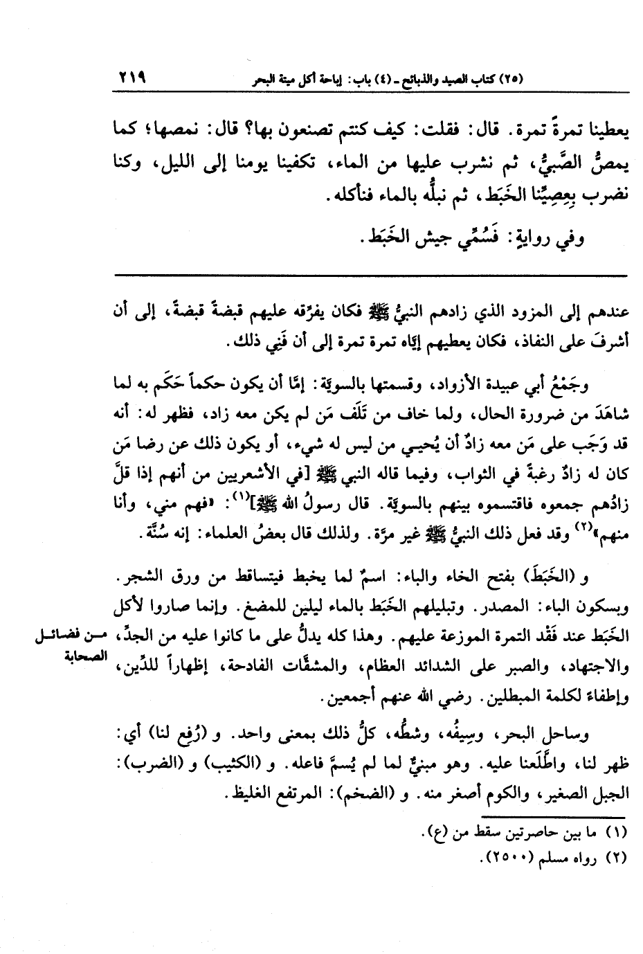 و(الخَبَط) بفتح الخاء والباء: اسم لما يُخبط فيتساقط من ورق الشجر. وبسكون الباء: المصدر. وتبليلهم الخَبَط بالماء ليلين للمضغ. وإنَّما صاروا لأكل الخبط عند فقد التمرة الموزعة عليهم. وهذا كله يدلُّ على ما كانوا عليه من الجِدِّ، والاجتهاد، والصبر على الشدائد العظام، والمشقات الفادحة، إظهارًا للدِّين، وإطفاءً لكلمة المبطلين. رضي الله عنهم أجمعين.
