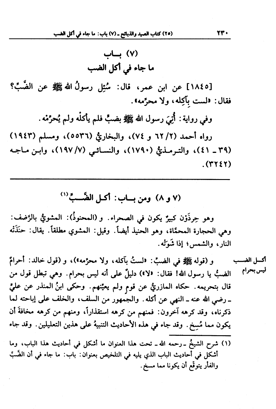 (7) باب ما جاء في أكل الضب