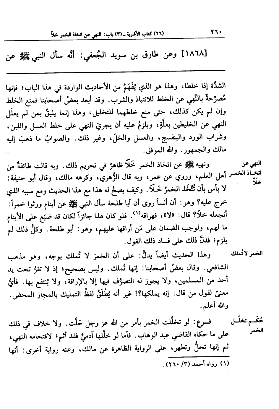 [1868] وعن طَارِق بن سُوَيدٍ الجُعفِيَّ أنه سَأَلَ النَّبِيَّ صَلَّى اللَّهُ عَلَيهِ وَسَلَّمَ عَن