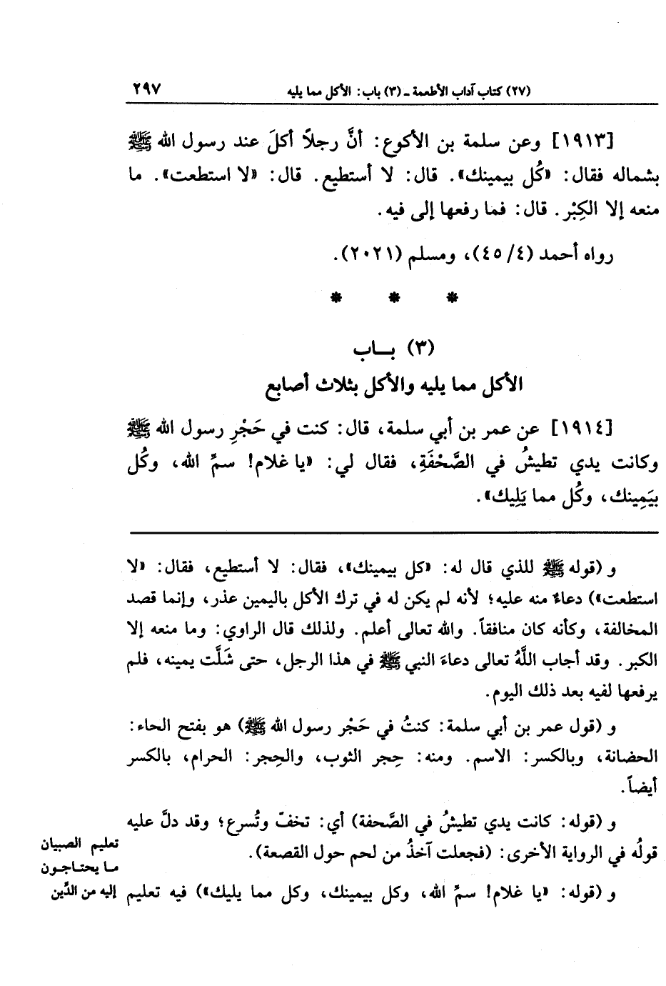 (3) باب الأكل مما يليه والأكل بثلاث أصابع