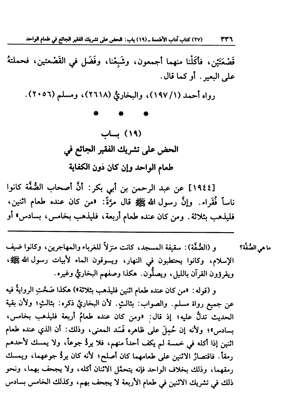 (19) باب الحض على تشريك الفقير الجائع في طعام الواحد وإن كان دون الكفاي ة