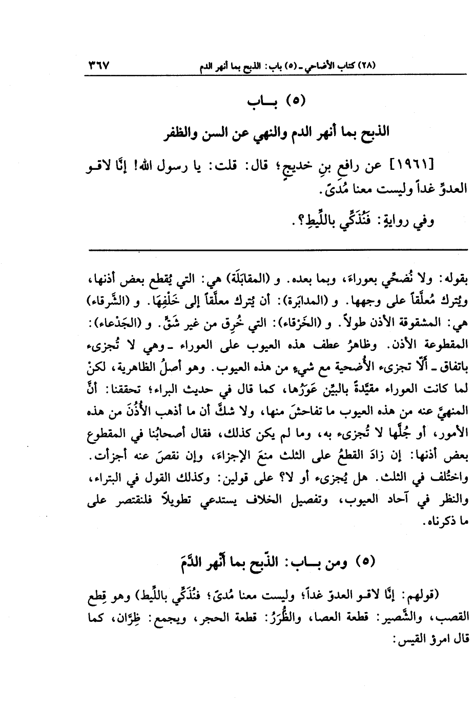(5) باب الذبح بما أنهر الدم والنهي عن السن والظفر