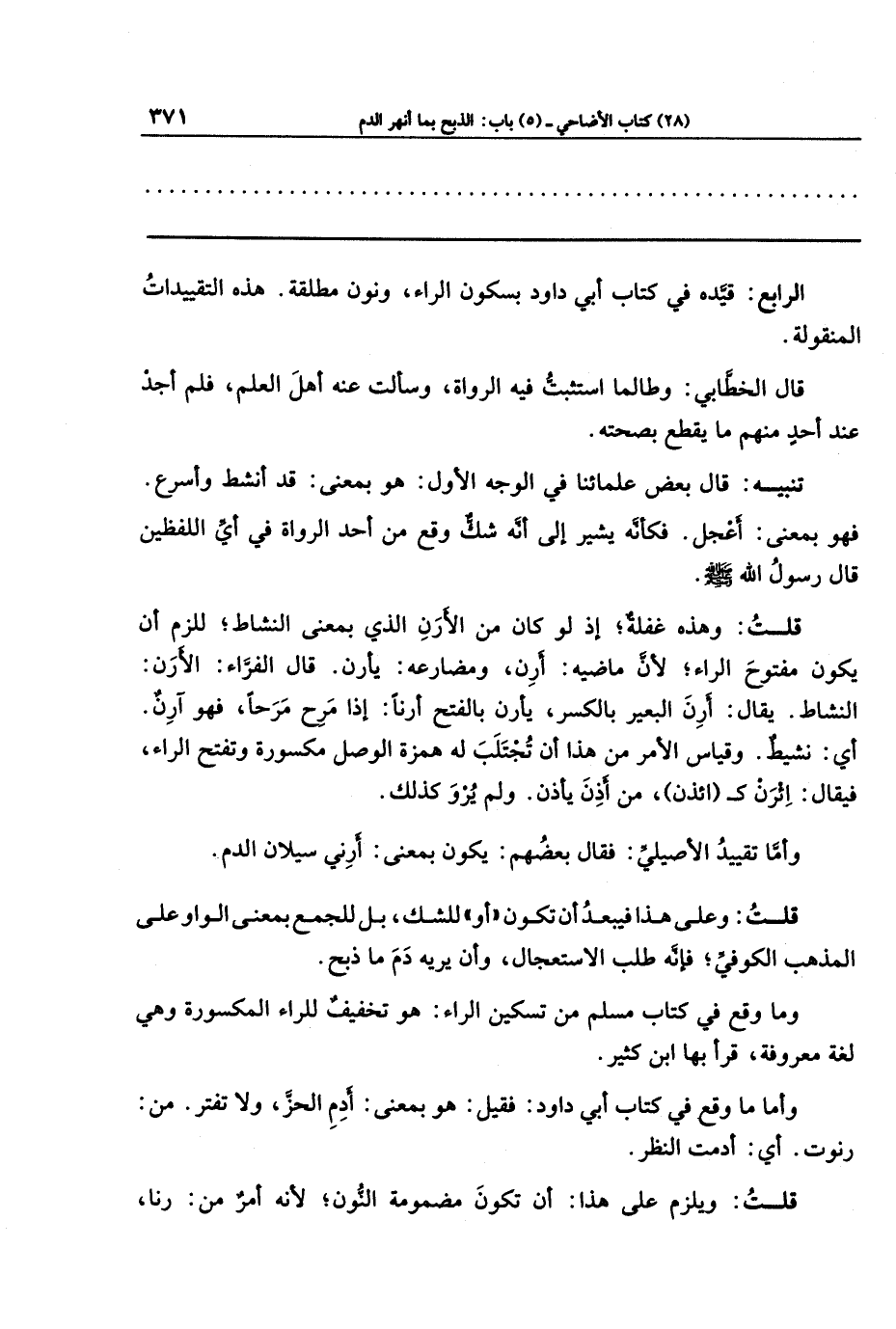 الرابع: قيَّده في كتاب أبي داود بسكون الراء، ونون مطلقة. هذه التقييدات المنقولة.