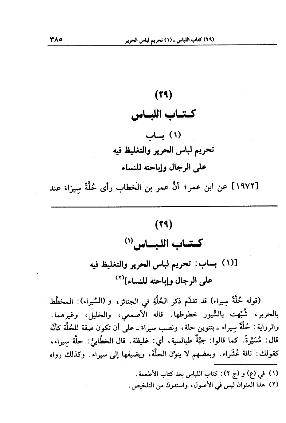 [1972] عَن ابنِ عُمَرَ: أَنَّ عُمَرَ بنَ الخَطَّابِ رَأَى حُلَّةً سِيَرَاءَ عِندَ