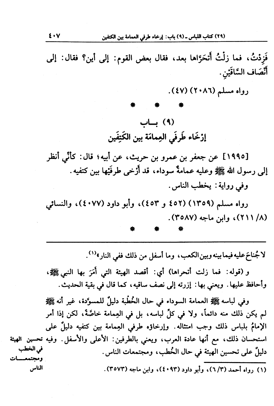 (9) باب إرخاء طرفي العمامة بين الكتفين