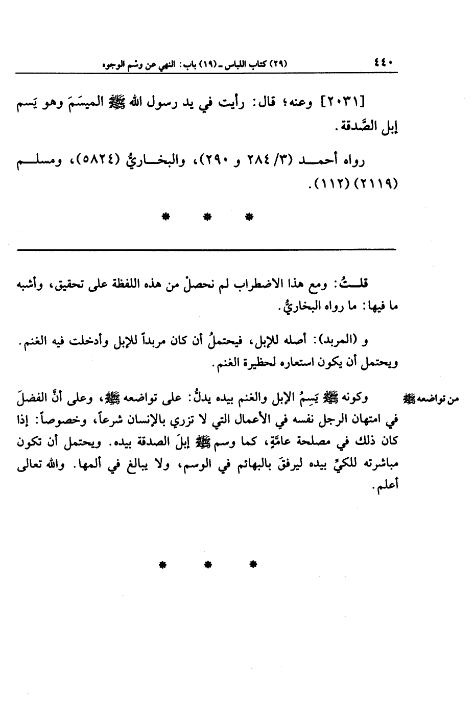 [2031] وعنه قَالَ: رَأَيتُ فِي يَدِ رَسُولِ اللَّهِ صَلَّى اللَّهُ عَلَيهِ وَسَلَّمَ المِيسَمَ، وَهُوَ يَسِمُ إِبِلَ الصَّدَقَةِ.