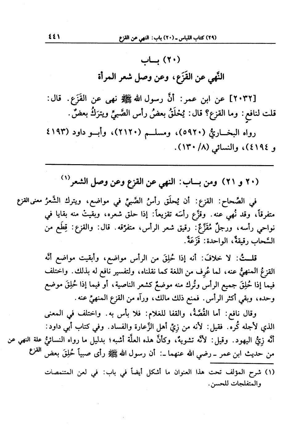 (20 و 21) ومن باب النهي عن القزع وعن وصل الشعر (¬1)