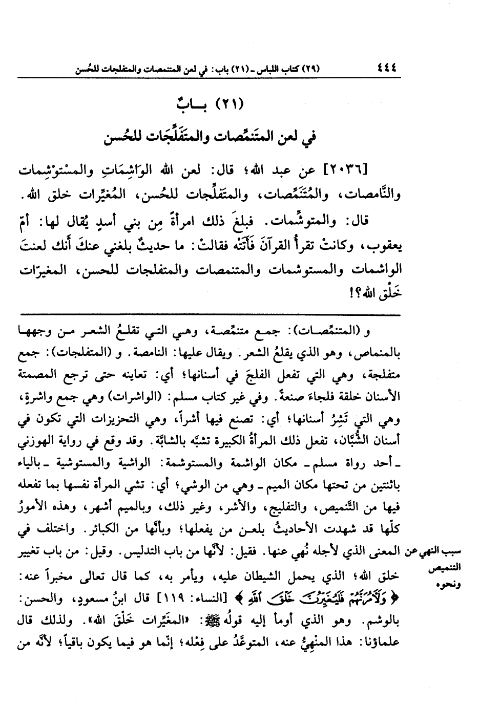 (21) باب في لعن المتنمصات والمتفلجات للحسن
