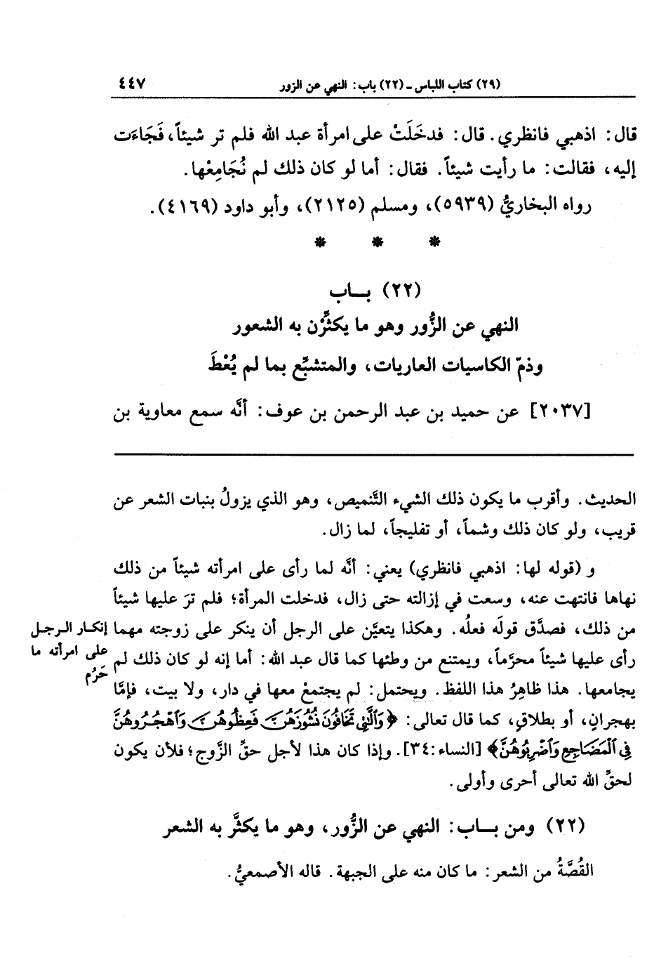 (22) باب النهي عن الزور وهو ما يكثرن به الشعور وذم الكاسيات العاريات والمتشبع بما لم يعط