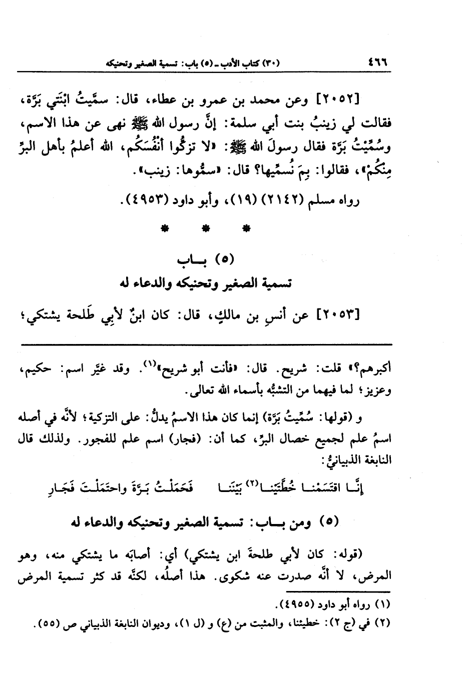 (5) باب تسمية الصغير وتحنيكه والدعاء له