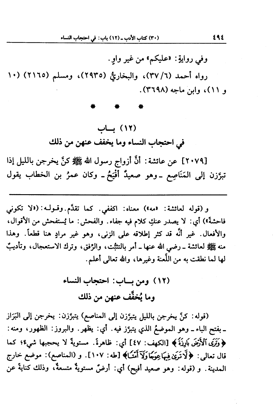 (12) ومن باب احتجاب النساء وما يُخفَّف عنهن من ذلك