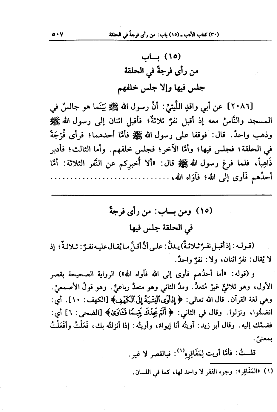 (15) ومن باب: من رأى فُرجَة في الحلقة جلس فيها