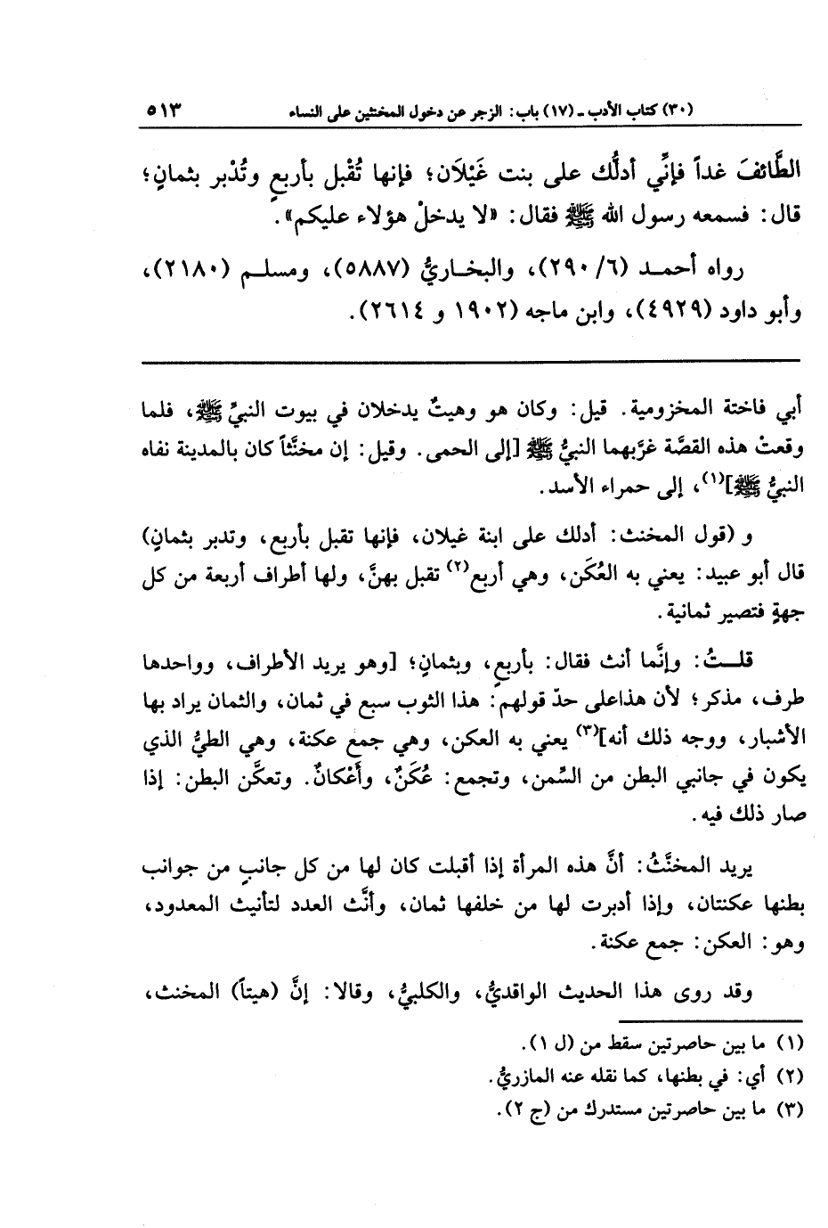 أبي فاختة المخزومي. قيل: وكان هو وهيت يدخلان في بيوت النبي - صلى الله عليه وسلم -، فلما وقعت هذه القصَّة غربهما النبي - صلى الله عليه وسلم - إلى الحمى. وقيل: إن مخنَّثا كان بالمدينة نفاه النبي - صلى الله عليه وسلم - (¬1) إلى حمراء الأسد.