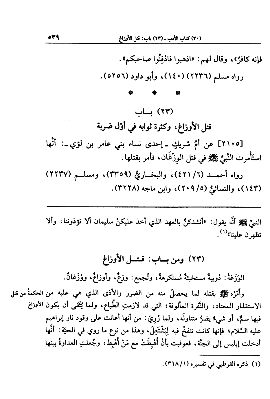 (23) باب قتل الأوزاغ وكثرة ثوابه في أول ضربة
