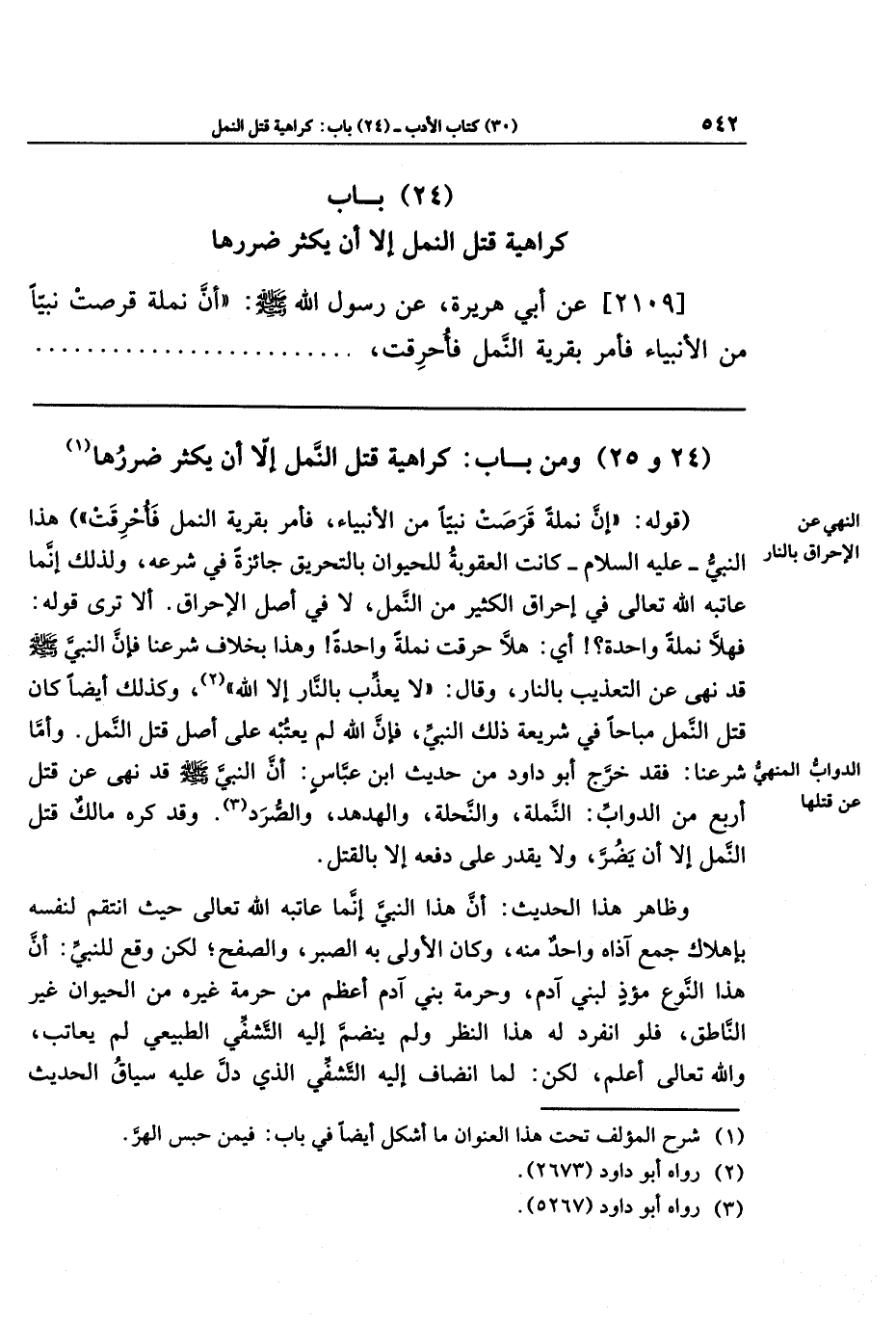 (24 و 25) ومن باب كراهية قتل النمل إلا أن يكثر ضررها (¬1)