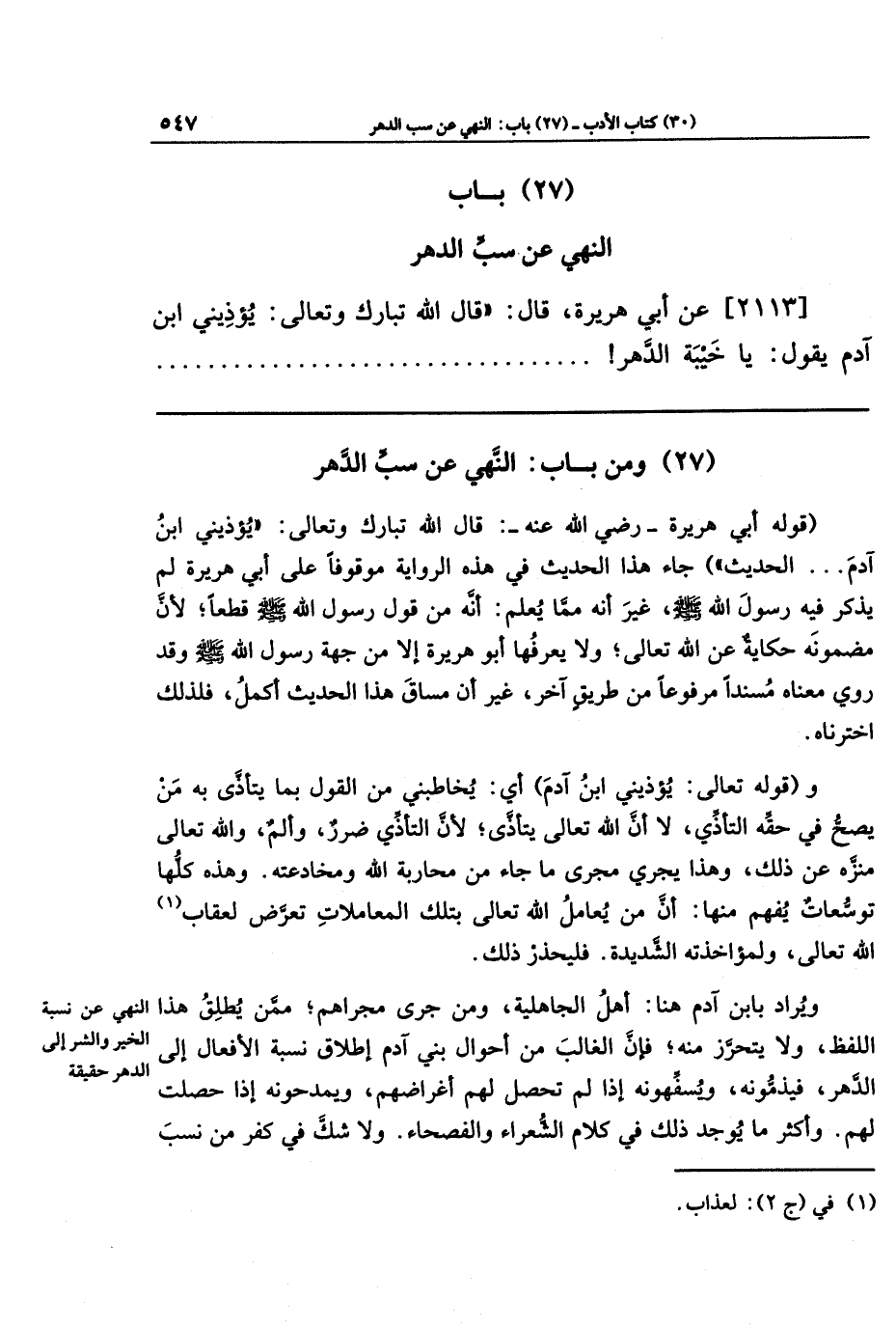 (27) ومن باب النَّهي عن سبِّ الدَّهر