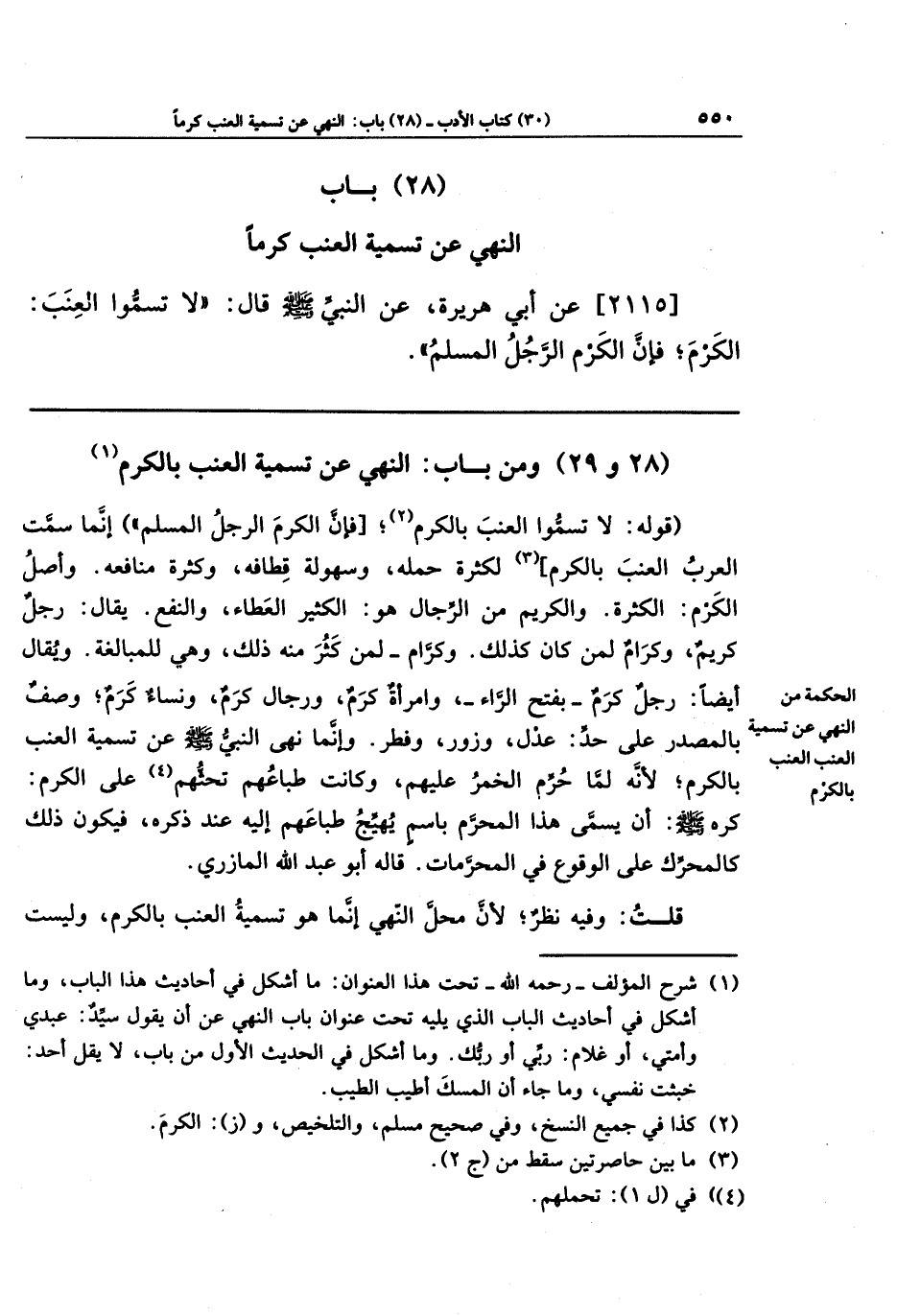 (28 و 29) ومن باب النهي عن تسمية العنب بالكرم (¬1)