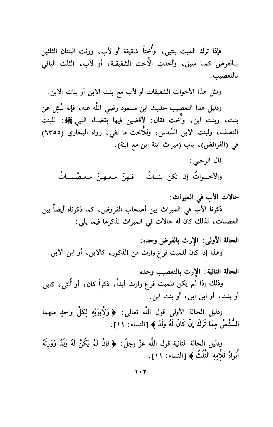 والأخوات إن تكن بنات ... فهن معهن معصبات