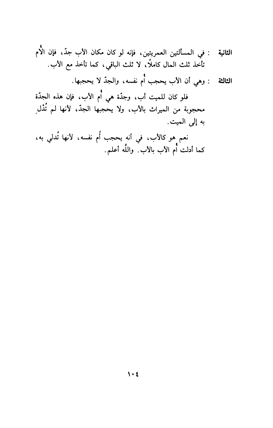 الثانية: في المسألتين العمريتين، فإنه لو كان مكان الأب جد، فإن الأم تأخذ ثلث المال كاملاً، لا ثلث الباقي، كما تأخذ مع الأب.