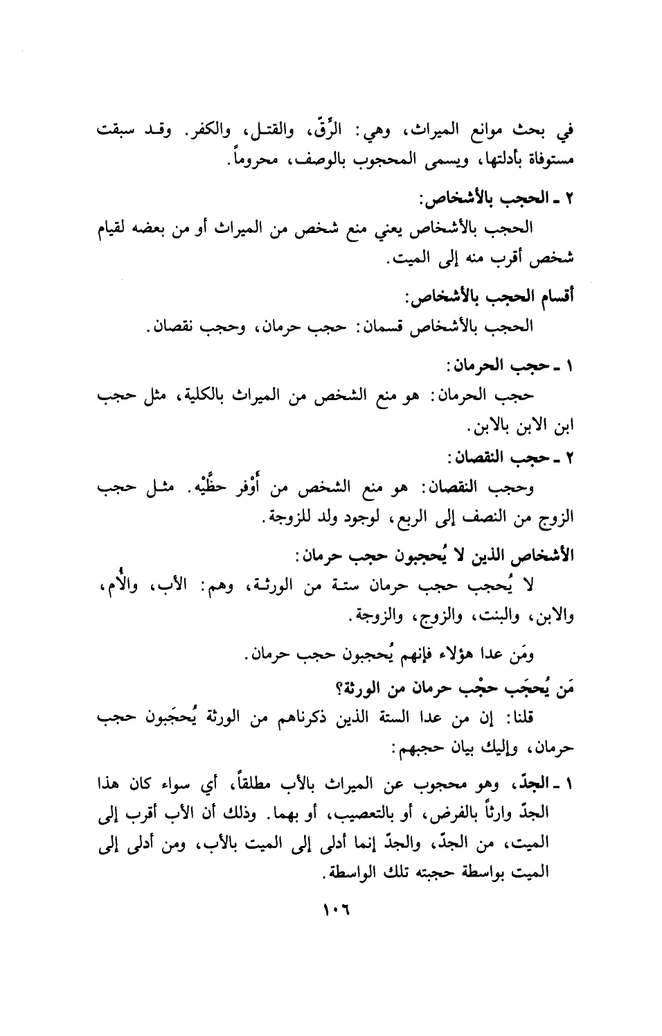الحجب بالأشخاص قسمان: حجب حرمان، وحجب نقصان.