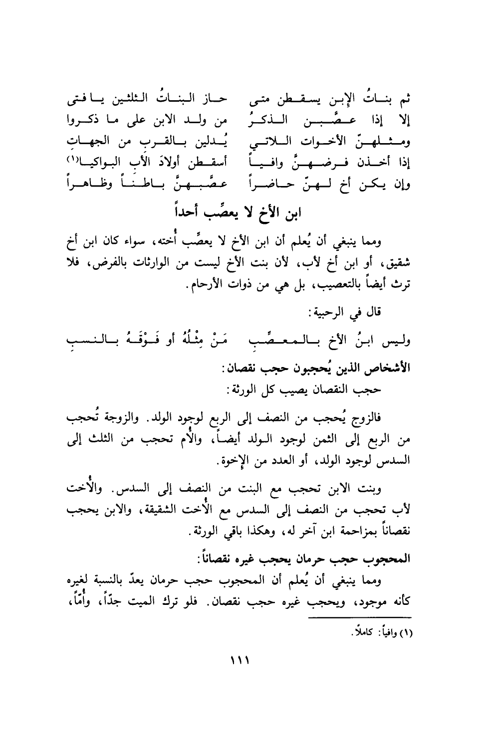 ثم بنات الإبن يسقطن متى ... حاز البنات الثلثين يا فتى