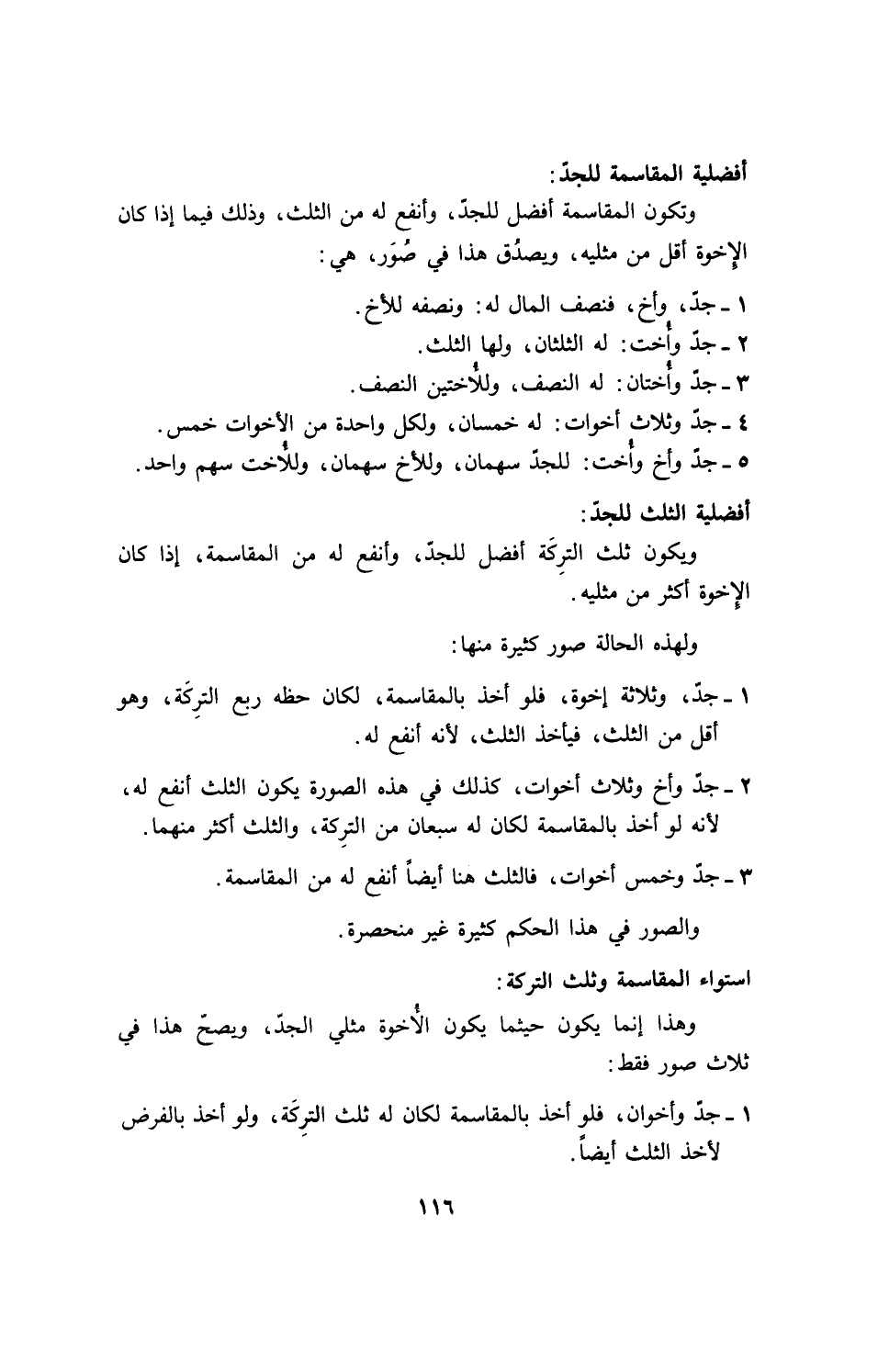 ويكون ثلث التركة أفضل للجد، وأنفع له من المقاسمة، إذا كان الإخوة أكثر من مثليه.