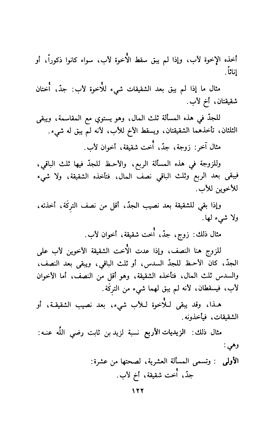 مثال ذلك: زوج، جد، أخت شقيقة، أخوان لأب.