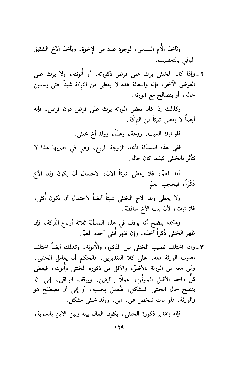 وهكذا يتضح أنه يوقف في هذه المسألة ثلاثة أرباع التركة، فإن ظهر الخنثى ذكراً أخذه، وإن ظهر أنثى أخذه العم.
