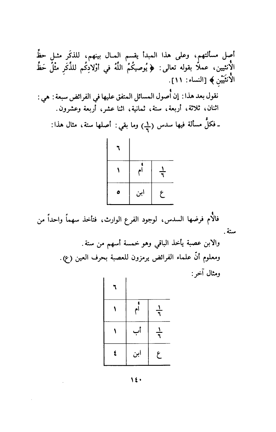 ومعلوم أن علماء الفرائض يرمزون للعصبة بحرف العين (ع).