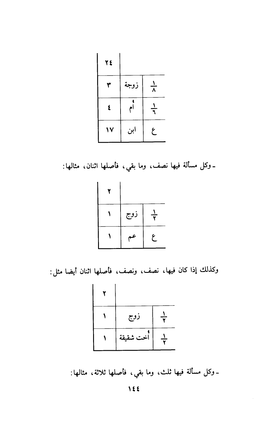 وكذلك إذا كان فيها، نصف، ونصف، فأصلها اثنان، مثالها: