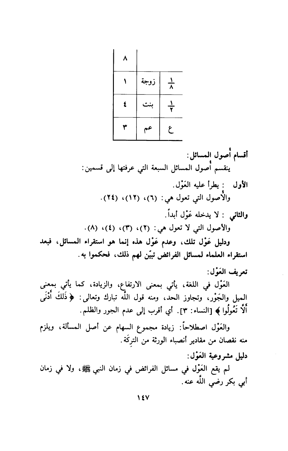 دليل مشروعية العول: