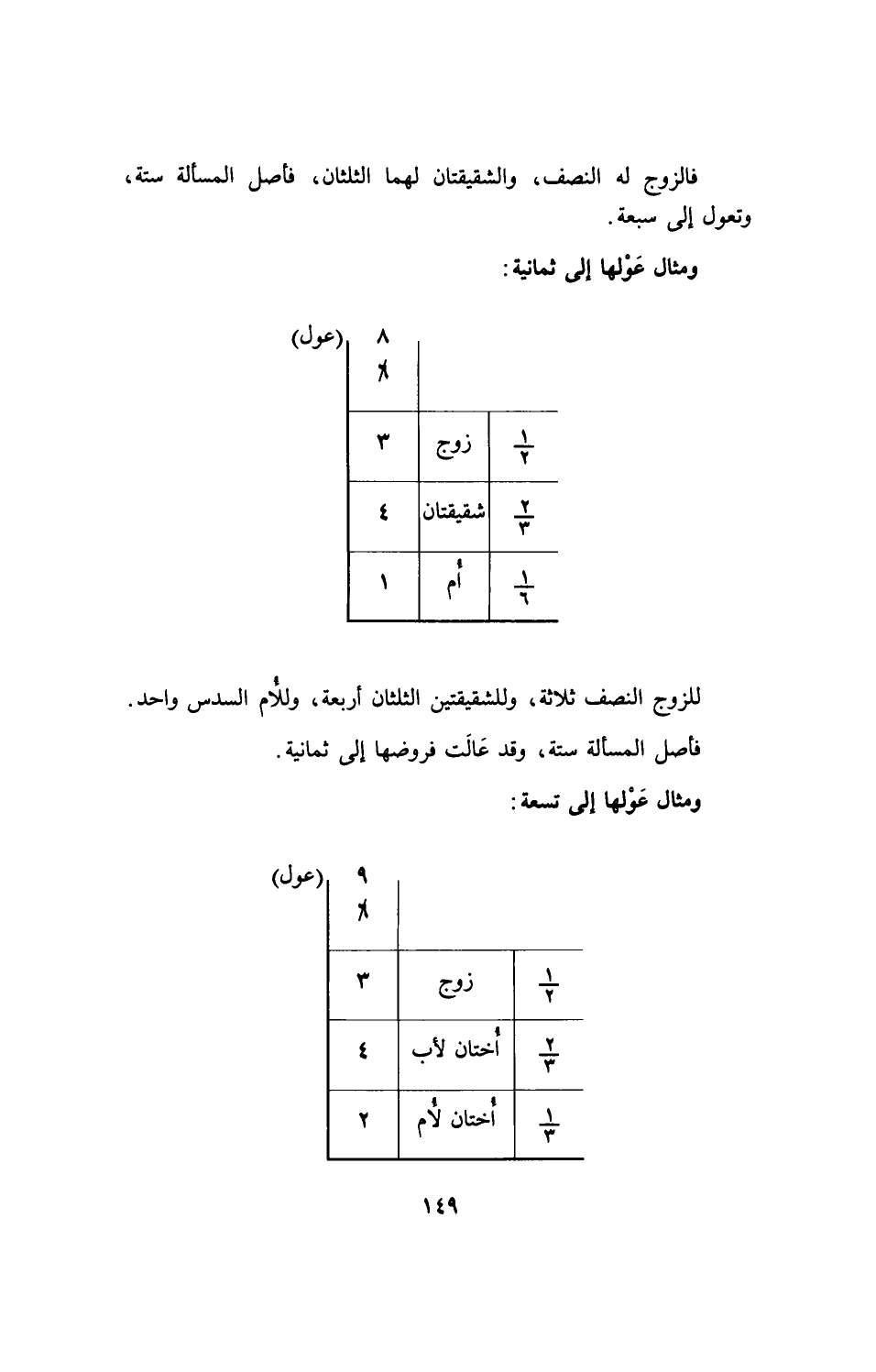 فالزوج له النصف، والشقيقتان لهما الثلثان، فأصل المسألة ستة، وتعول إلى سبعة.
