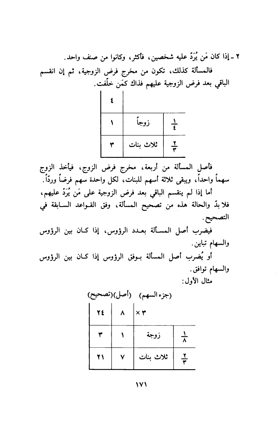 أو يضرب أصل المسألة بوفق الرؤوس إذا كان بين الرؤوس والسهام توافق.
