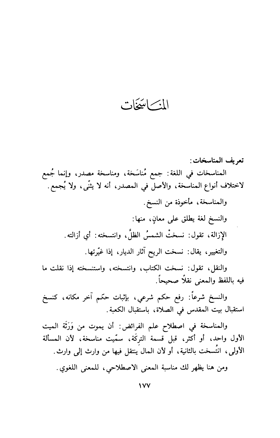 المناسخات في اللغة: جمع مناسخة، ومناسخة مصدر، وإنما جمع لاختلاف أنواع المناسخة، والأصل في المصدر، انه لا يثني، ولا يجمع.