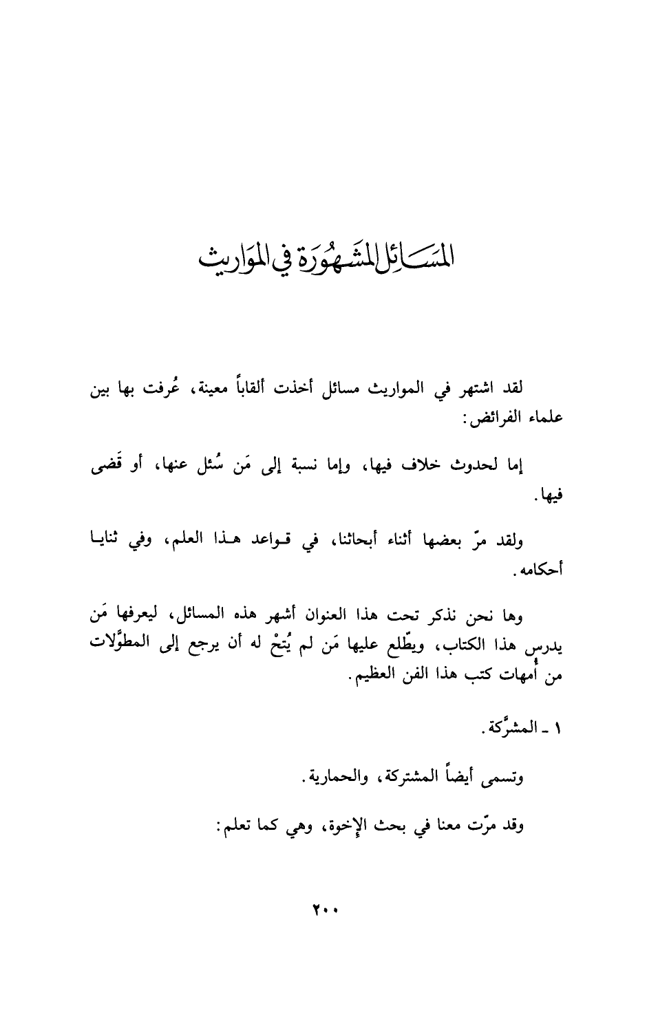 لقد اشتهر في المواريث مسائل أخذت ألقاباً معينة، عرفت بها بين علماء الفرائض: