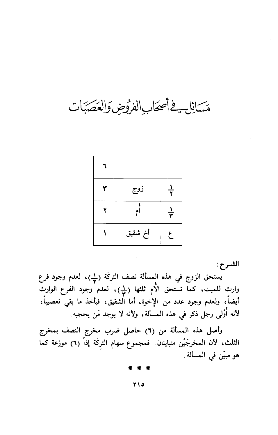 مسائل في أصحاب الفروض والعصبات