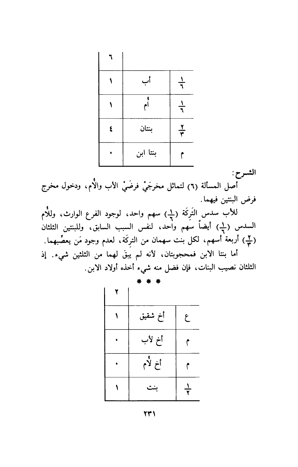 أصل المسألة (6) لتماثل مخرجي فرضي الأب والأم، ودخول مخرج فرض البنتين فيهما.