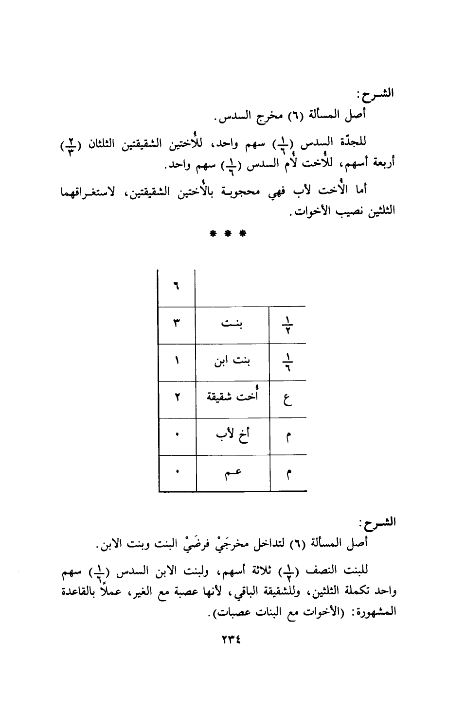 أصل المسألة (6) لتداخل مخرجي فرضي البنت وبنت الابن.